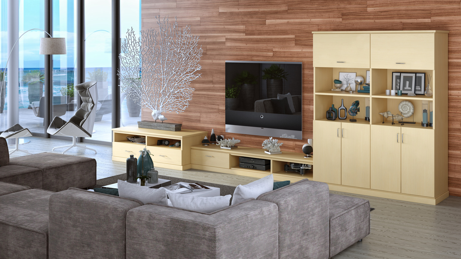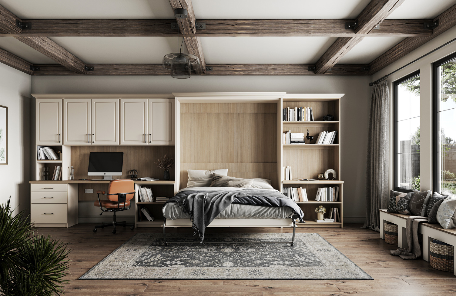 HONEY MAPLE WOODGRAIN FINISH | DECO 101 DOORS, G101 GLASS DOORS, 101 DRAWERS, 424 CRL CROWN & 426 BASE MOLDING | H9 4IN GOLD PULLS