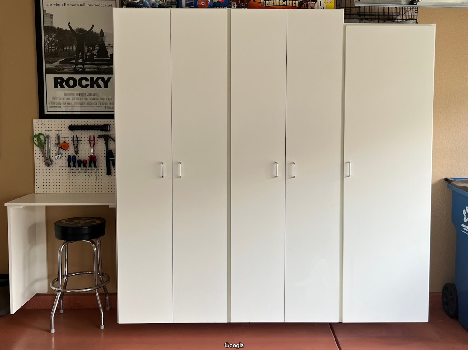 Yes! We specialize in complete garage storage systems that combine cabinets, open shelving, workbenches, and pegboards. Every element is built to fit your space and lifestyle. See full garage systems here.