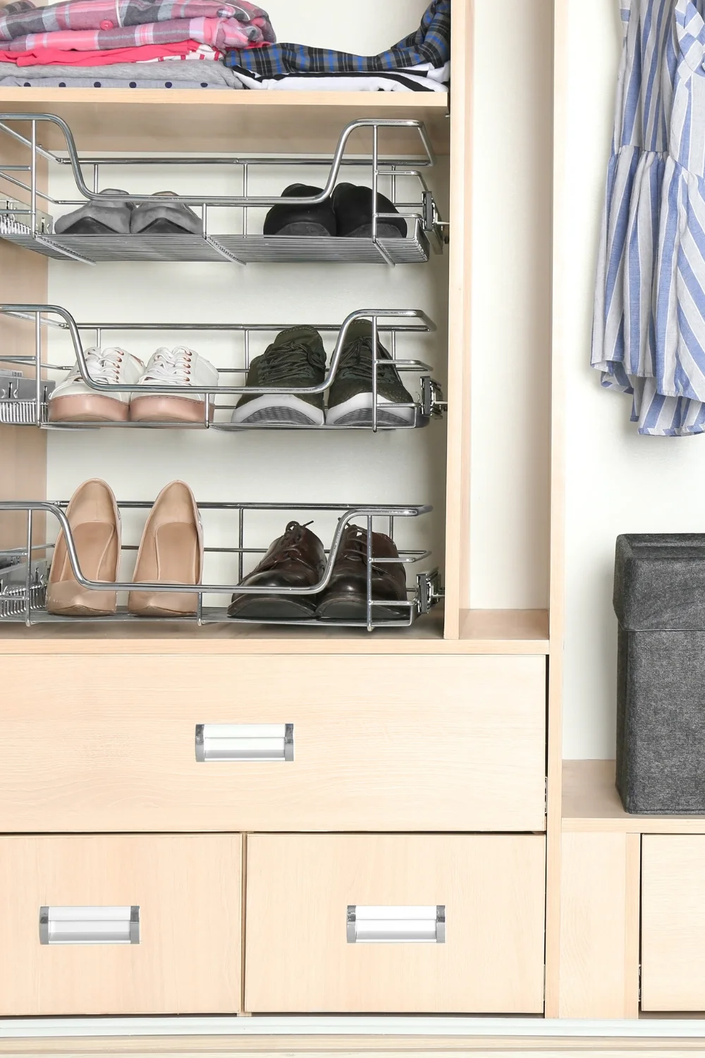 Si tienes cajas de zapatos más grandes, puedes usarlas para organizar cajas de zapatos y guardar los zapatos debajo de la cama. Es una excelente manera de ahorrar espacio, especialmente en dormitorios pequeños o dormitorios.