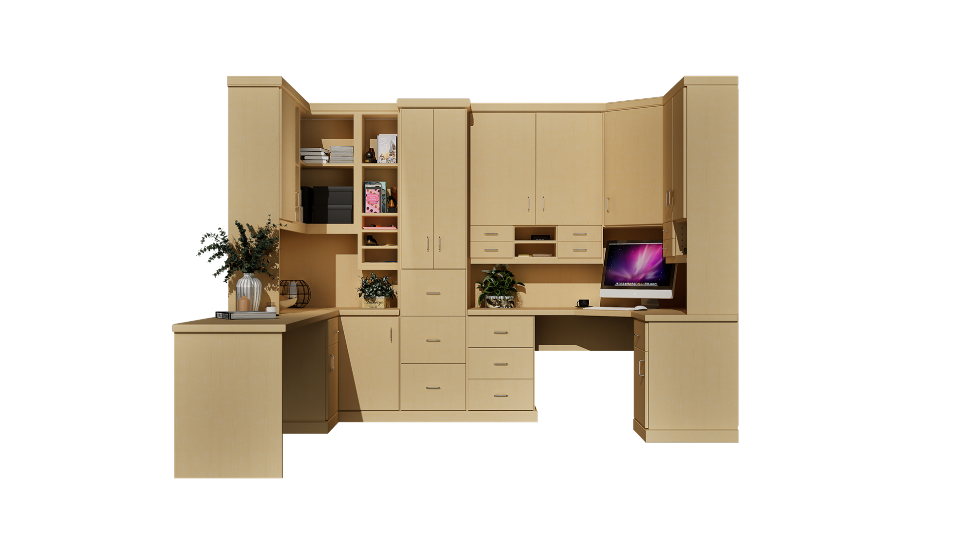 Choose your Home Office collection. From custom home office cabinets to home office storage systems, you'll choose the configuration that best fits your space. Add built-in shelving, drawers, and organization features that make your office both beautiful and productive.