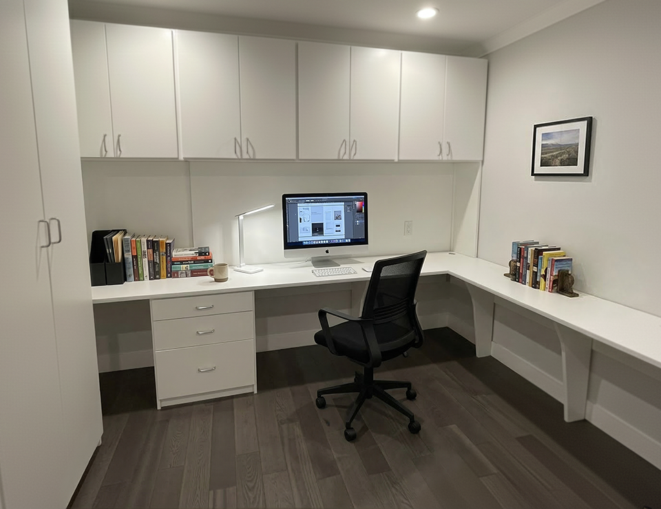 Our expert designers craft custom home office storage systems that fit your space, schedule, and workflow. From dual workstations to creative corners, every detail is built to inspire productivity and focus.